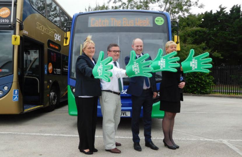South Swindon MP Robert Buckland, has jumped on board with Justin Tomlinson MP and local bus operators Thamesdown Transport and Stagecoach West in support of Catch the Bus Week.
