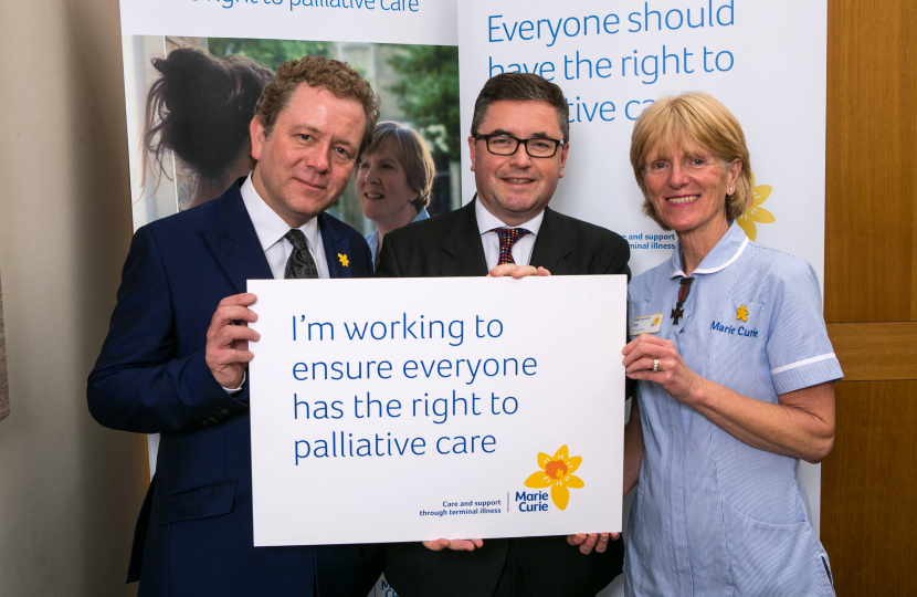 Robert Buckland MP teamed up with Marie Curie Nurse Sally Monger-Godfrey and renowned impressionist Jon Culshaw to back the campaign from the UK’s leading charity for people living with any terminal illness and their families.
