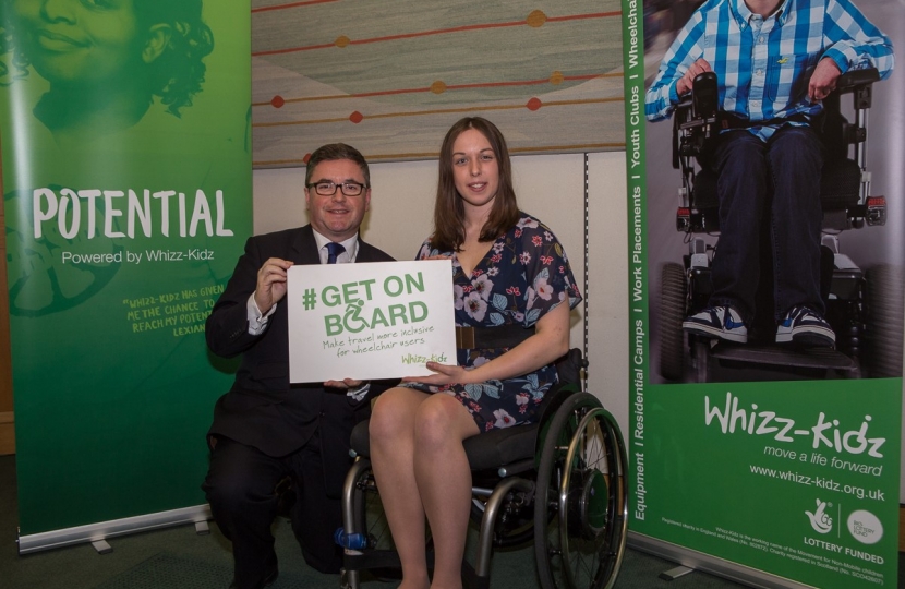 Robert said: “While access to transport has improved a great deal over the last twenty years, inaccessible transport is still preventing many young wheelchair users from living full lives. I’m delighted to be supporting Whizz-Kidz’s campaign, because I believe wheelchair users should be able to travel with the same freedom and independence as everyone else. I’m calling on local travel and transport providers and my constituents to ‘Get on Board’ and think about the changes they can make to help achieve this”.